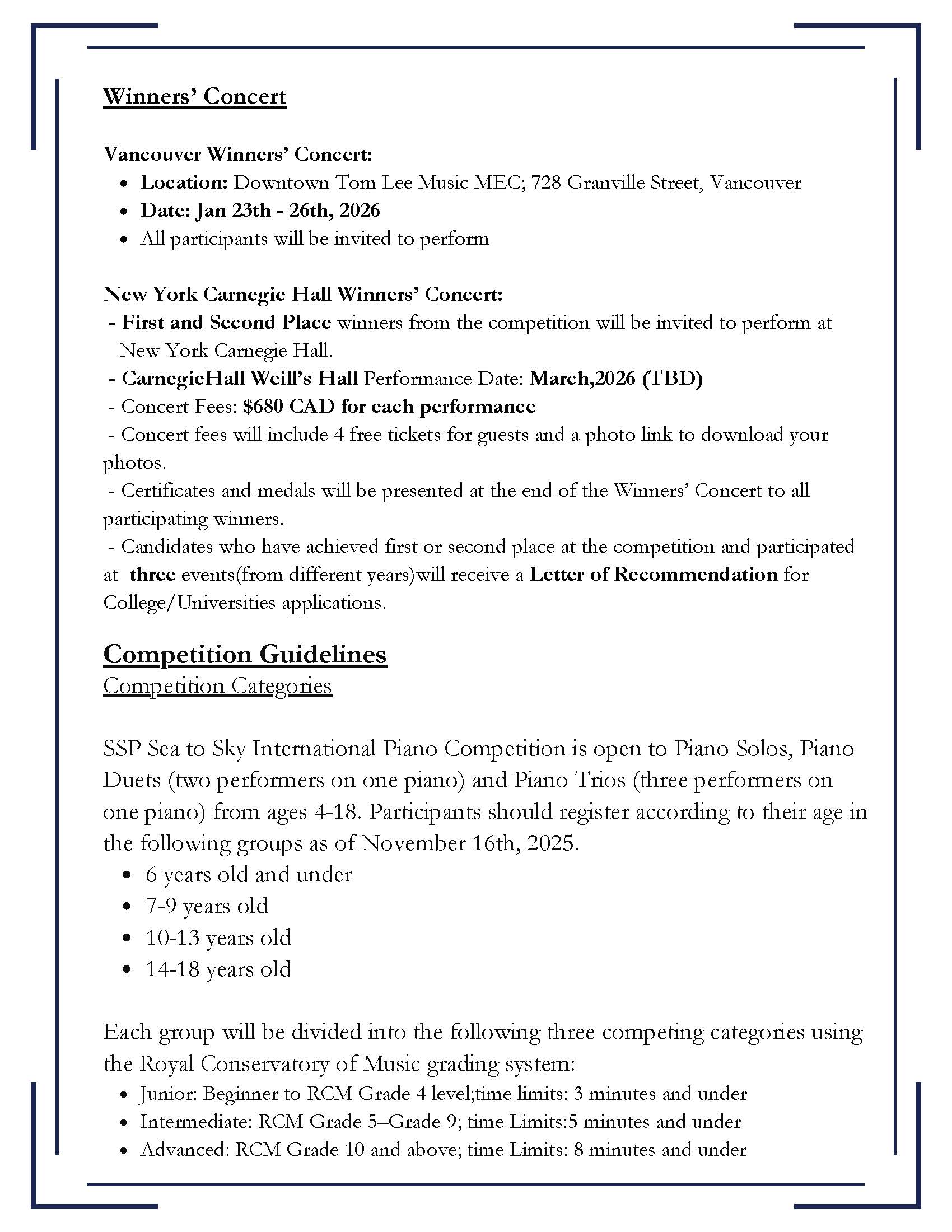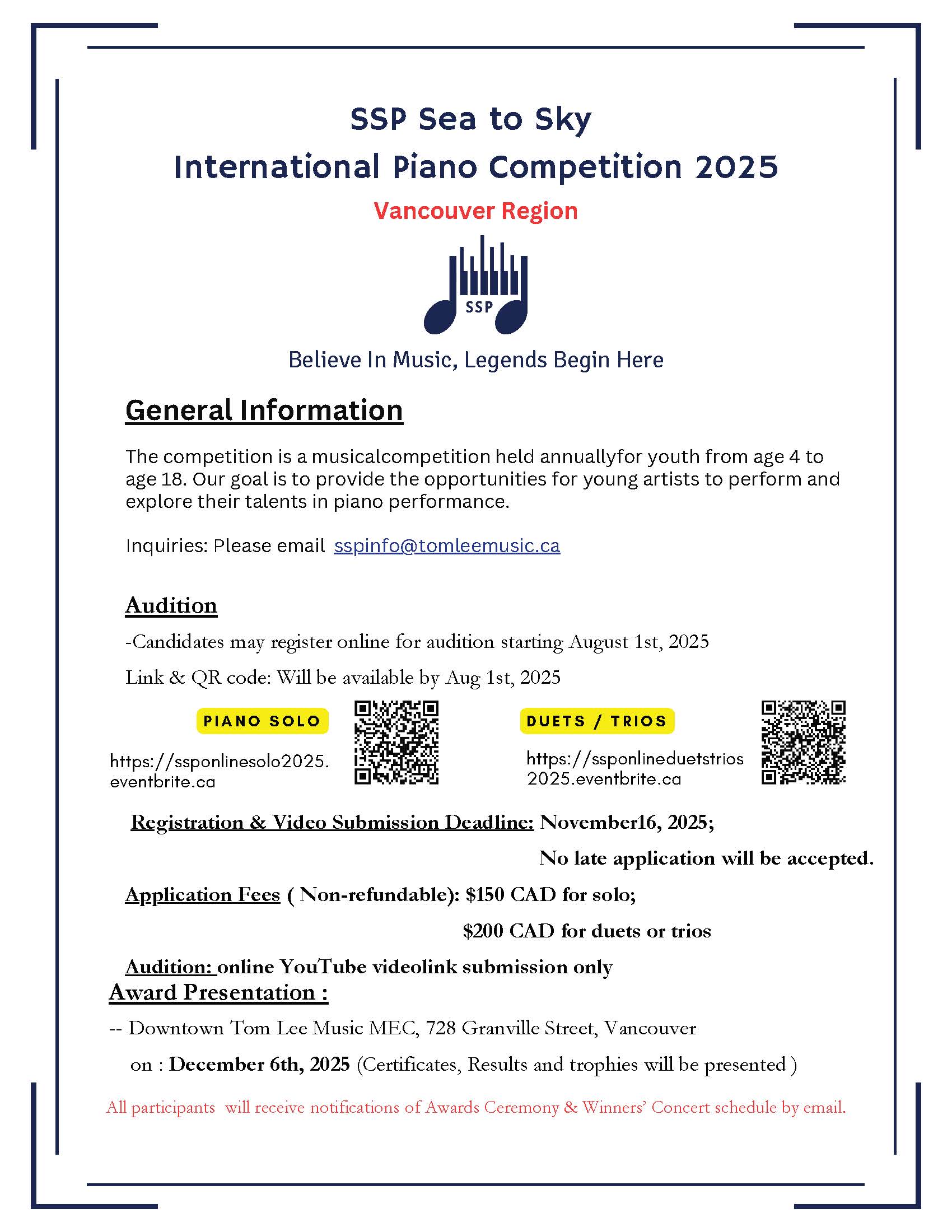 SSP Sea to Sky International Online Piano Competition (Solo) 2025